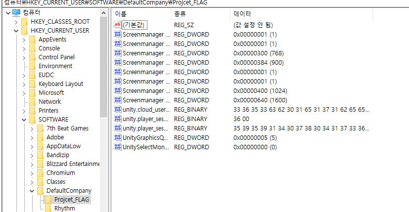 일단 빌드파일의 PlayerPrefs가 저장되는 위치는 레지스트리다.