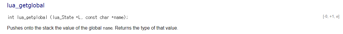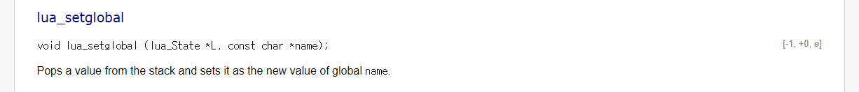 lua_getglobal과 lua_setglobal은 각각 push, pop이 한개 있다. 주의하자