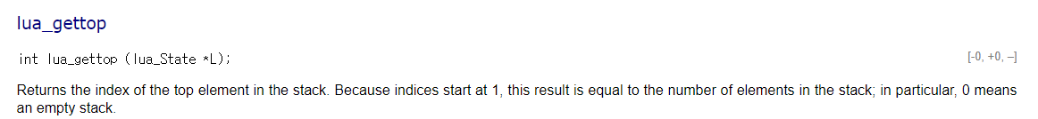 lua_pop은 위와 같은 표시가 붙어있는데, n개를 스택에서 팝하는 함수라서 그렇다. 반대로 +0이라 푸쉬는 아예없다.